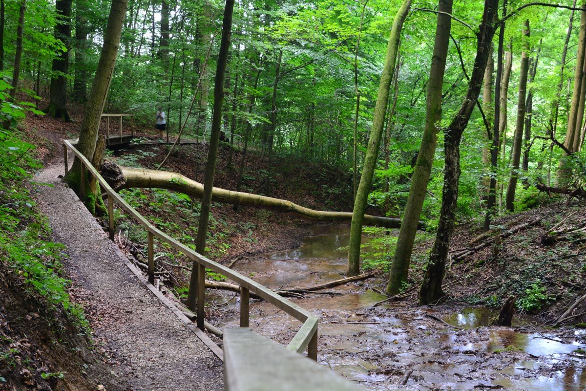 Einen knappen Kilometer talab liegt in der Nähe des Burgsteins die Moritzkapelle. Sie war vermutlich die Burgkapelle der Herren von Ludunbach, die für die Zeit zwischen 1079 und 1203 bezeugt sind und auf dem Burgstein ansässig waren. Etwas südlich hat der Moritzbach in einem schönen, lichten Wald gut ausgeprägte Sinterterrassen aufgebaut, über die er in Kaskaden ins Tal rauscht. Man kann ihnen auf Treppen ein Stück weit folgen.