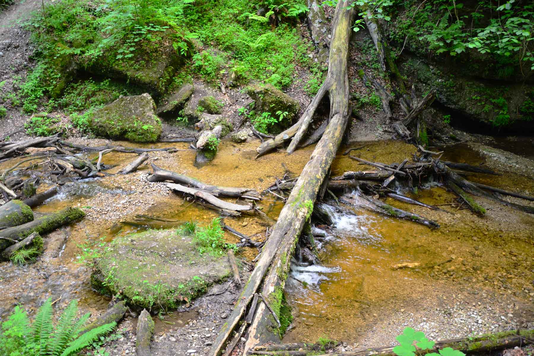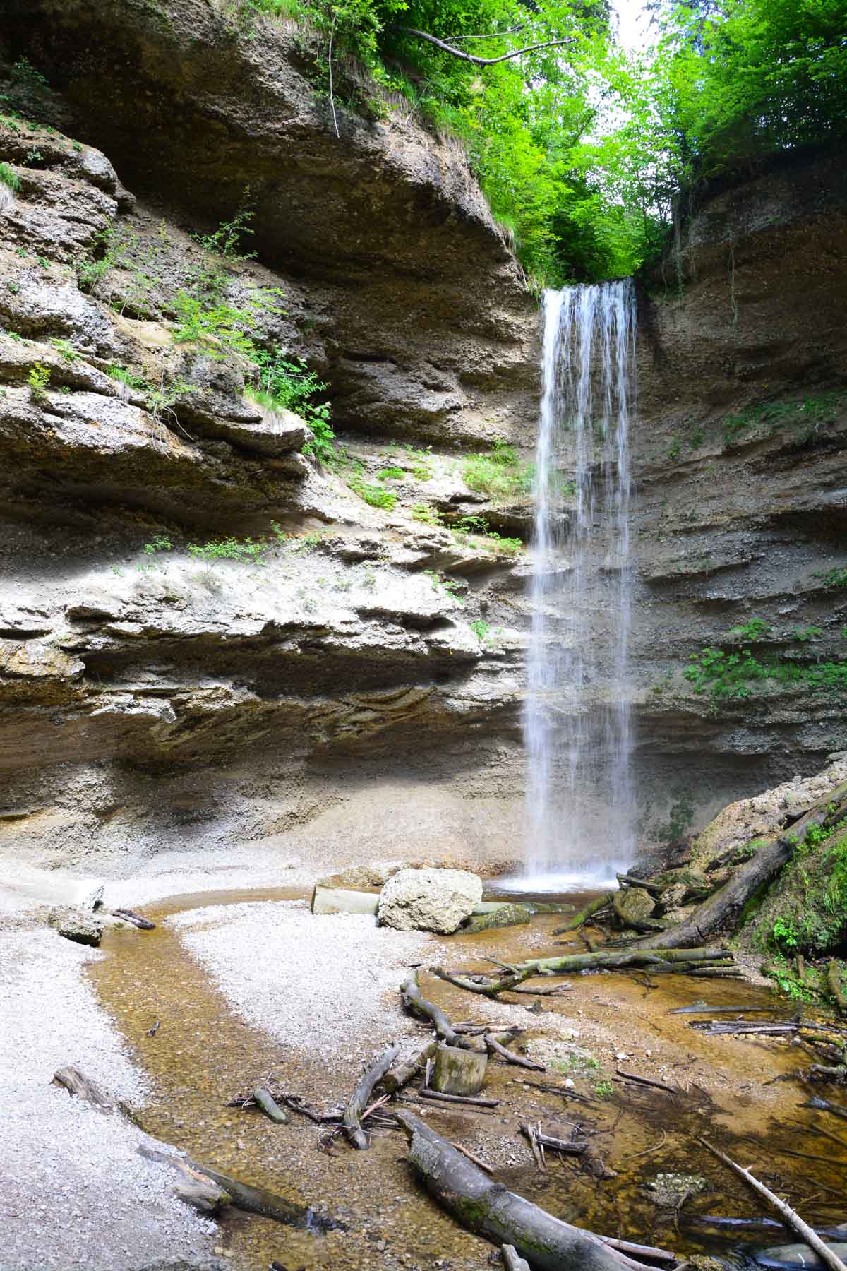 Die Deckenschotter auf Mergeln mit Sanden der Oberen Süßwassermolasse bilden zwar eine beeindrucken Kulisse, bedingen aber auch eine recht hohe Instabilität der Schichtung. So muss die Schlucht nach Unwettern immer wieder wegen Rutschungen und Rissen im Gestein auf längere Zeit gesperrt werden - zuletzt im Jahr 1919 und im Juni 2021.