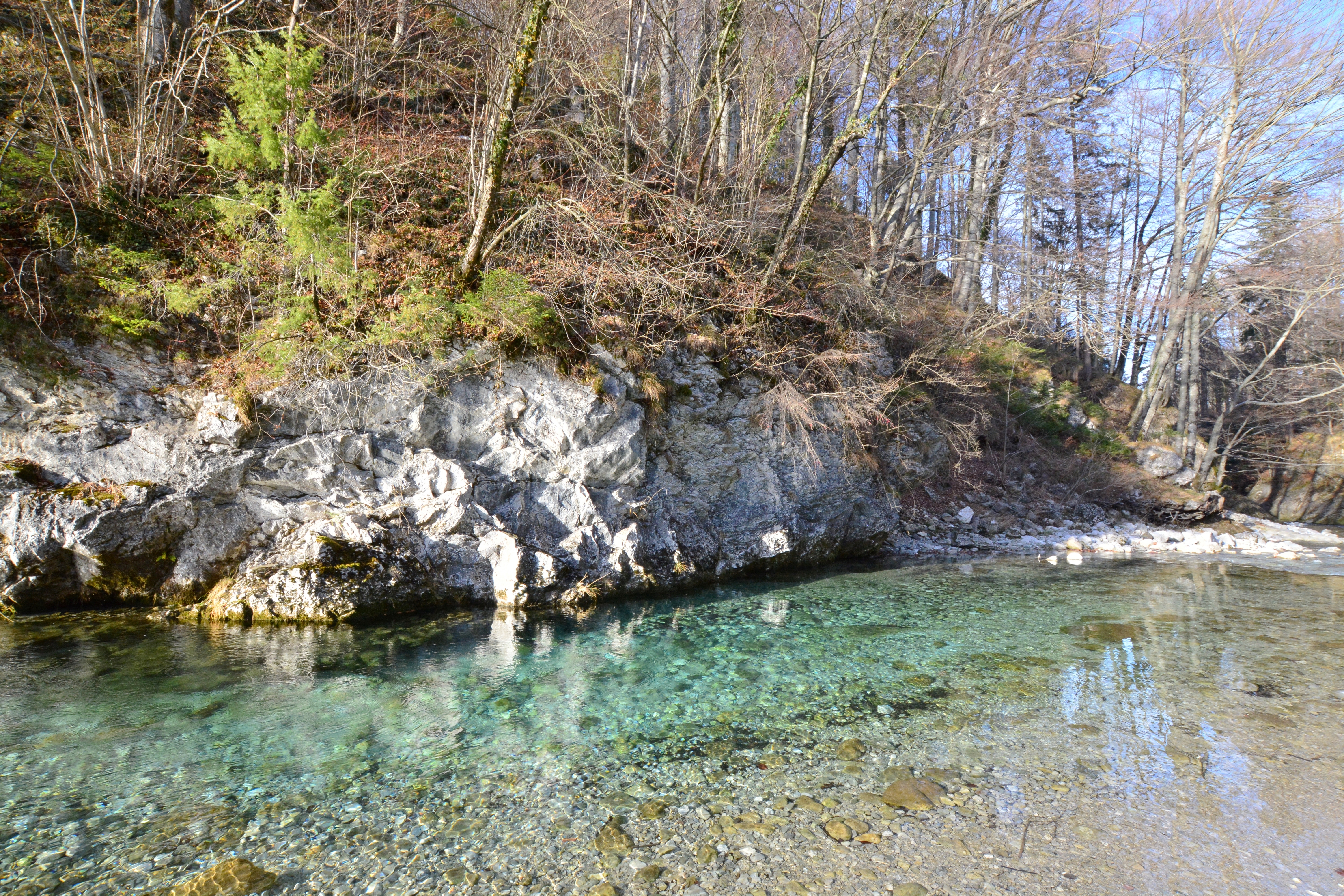 Mit solchen Wassermassen hat sie sich im Lauf der Zeit an mehreren Stellen tief ins Gestein gegraben. Der imponierendste Durchbruch ist der unterhalb der Kapelle "Maria an der Ketten", wo man von oben Blicke auf den Fluss werfen kann. Der heute bequeme und überaus schöne Weg hoch über der Prien war einst eine gefährliche Passage für die Fuhrleute. Die Kapelle erinnert an die Zeit, als diese Route noch die einzige war im Priental und Maut bezahlt werden musste. Ein Fuhrwerk mit sechs Rössern soll hier tief hinab in die Prien gestürzt sein. In einem Fenster der kleinen Kapelle ist neben dem heiligen Christopherus auch ein schwarzer Hund dargestellt. Der Sage nach soll ein Handwerksgeselle in der nahegelegenen Schmiede am Hammerbach Eisen mitgenommen und es in einer Felsenhöhle an dieser Stelle versteckt haben. Als er seine Beute holen wollte, stürzte ein großer schwarzer Hund aus der Felsspalte. Ein paar eiserne Kettenringe baumeln am Felsen und bezeugen den Namen "Maria an der Ketten".