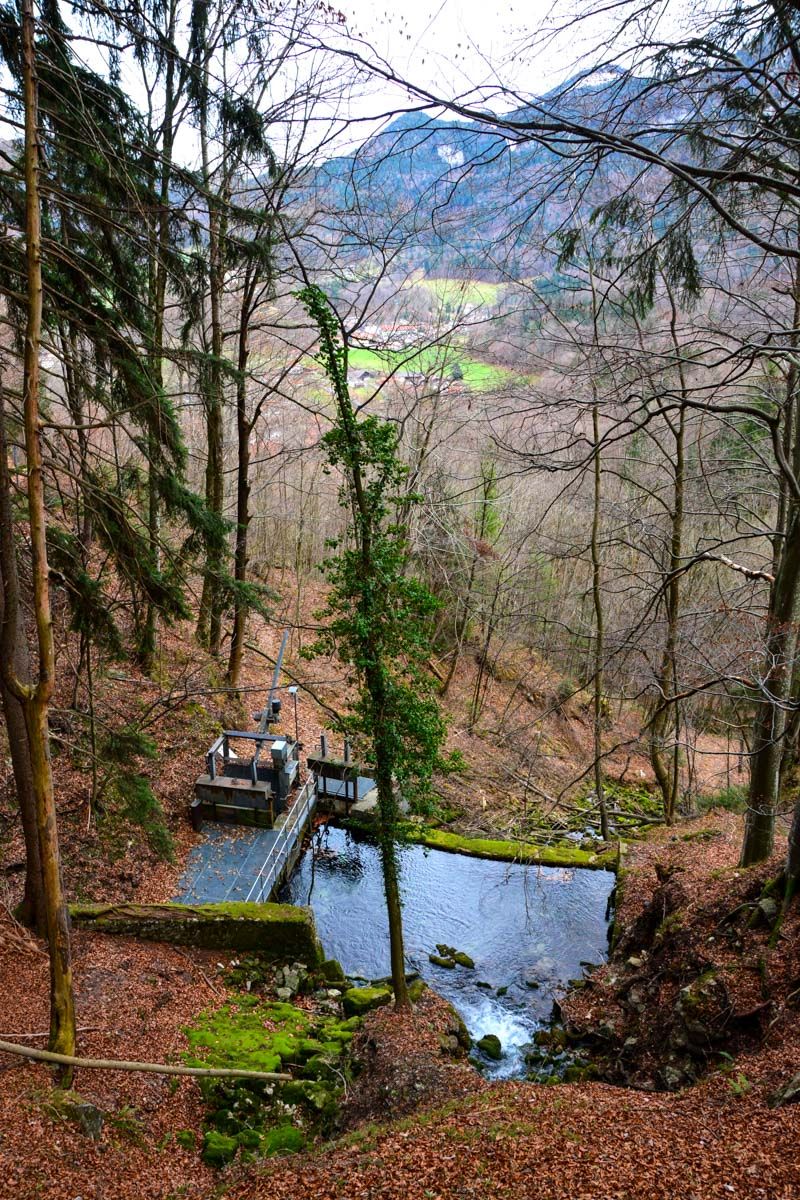 Weiter südlich donnert etwas abseits des Prienweges bei Einfang der kleinere "Einfangwasserfall" des Floderbachs ins Tal, weiter südlich der größere Wasserfall der "Schossrinn" mit seinen fast 100 Meter Höhe. Es führt ein gekennzeichneter Weg bis direkt unter den Wasserfall, der in kalten Wintern einen riesigen Dom aus blauem Eis bildet.