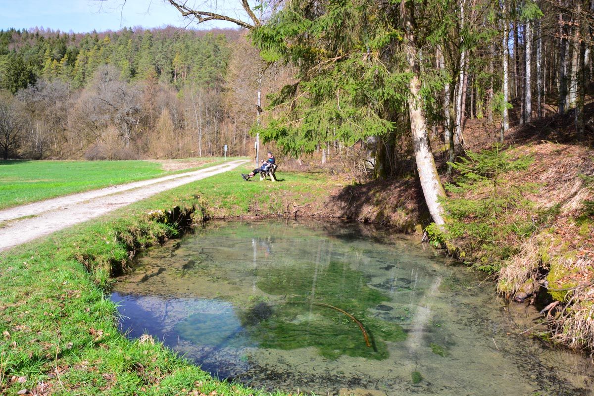 Die kleine Tour vom Wanderparkplatz aus vorbei an Siegritzbrunnen und Tummler kann man auch mit einem MTB fahren. Den Quelltopf im Talkessen kann man vom Weg aus unten liegen sehen. Der Pfad dorthin ist wenig ausgetreten - allerdings nicht wirklich gefährlich, da man schlimmstenfalls in den Bach rutscht und nass wird.