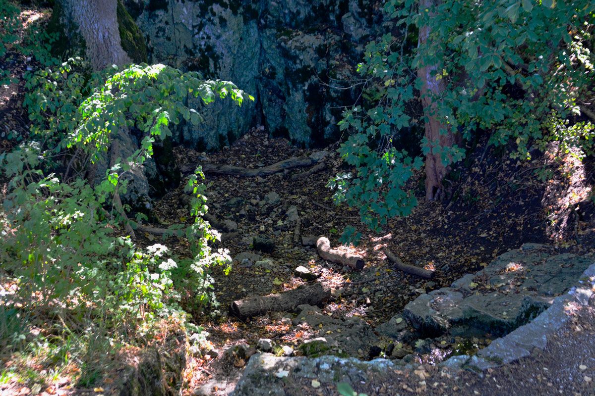 Oben am Hochplateau liegt zudem des Naturdenkmal Rutschenhofbrunnen auf 740 Meter Höhe nah am Weg. Diese nie versiegenden Wasserquelle entspringt in einer natürlichen Doline im Karstgestein, unter dem sich die Niederschläge der Umgebung auf eine wasserundurchlässige Schicht aus Basalttuff sammeln. Auch ein vorzeitliches Vulkanmar ist an dieser Stelle nachgewiesen.