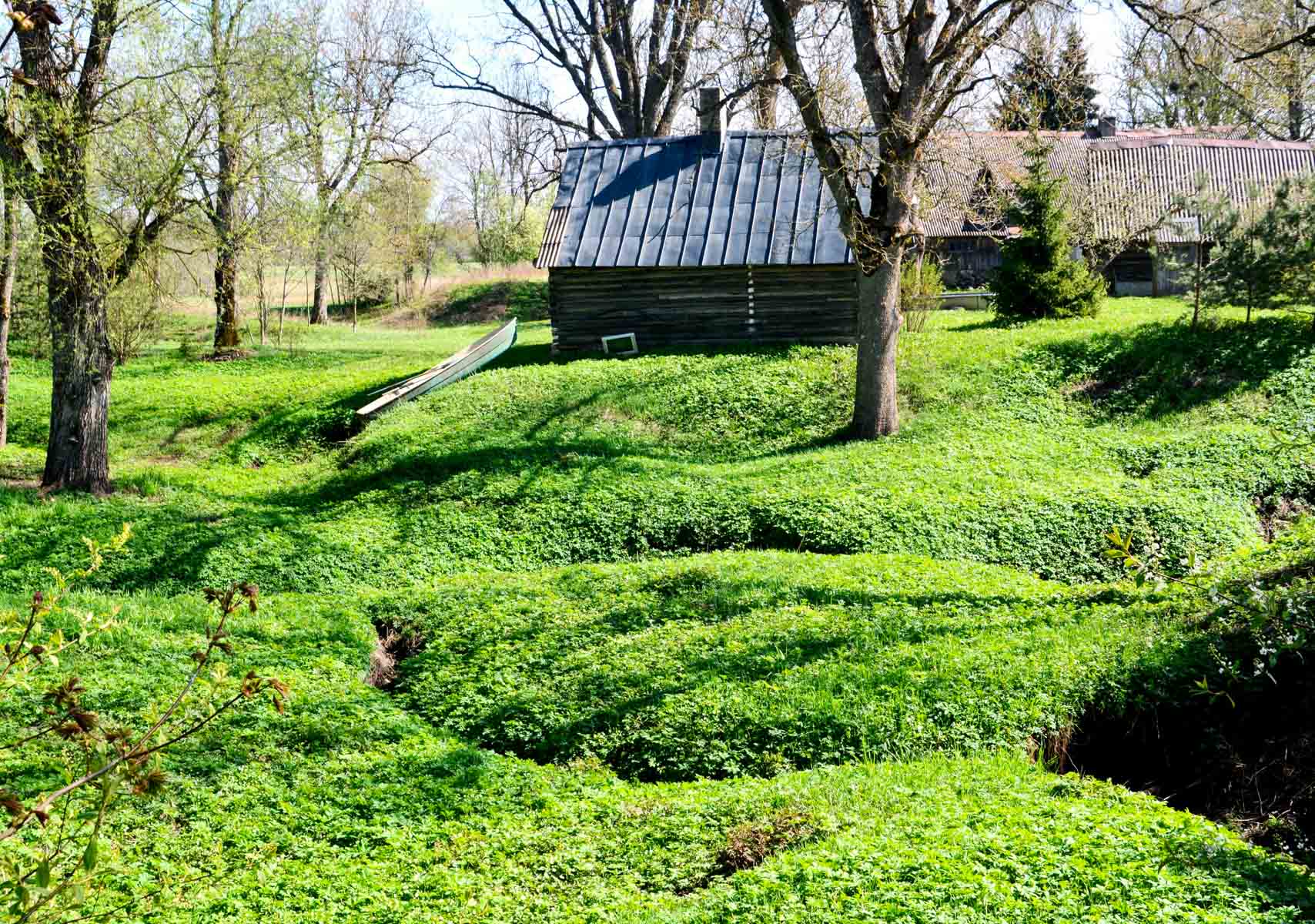 Aber auch wenn die Hexen nicht kochen, hat Tuhala mit seinem Karst-Geopfad sehr Interessantes zu bieten: Periodische Quellen und permanente, deren Wasser dunkel von den Huminstoffen des teilweise anmoorigen Bodens ausströmt, Schlucklöcher und Dolinen (59.194409, 24.958288), tief eingeschnittene trockene Wasserläufe, an deren hohen Ufern Boote auf ihren nächsten Einsatz warten.