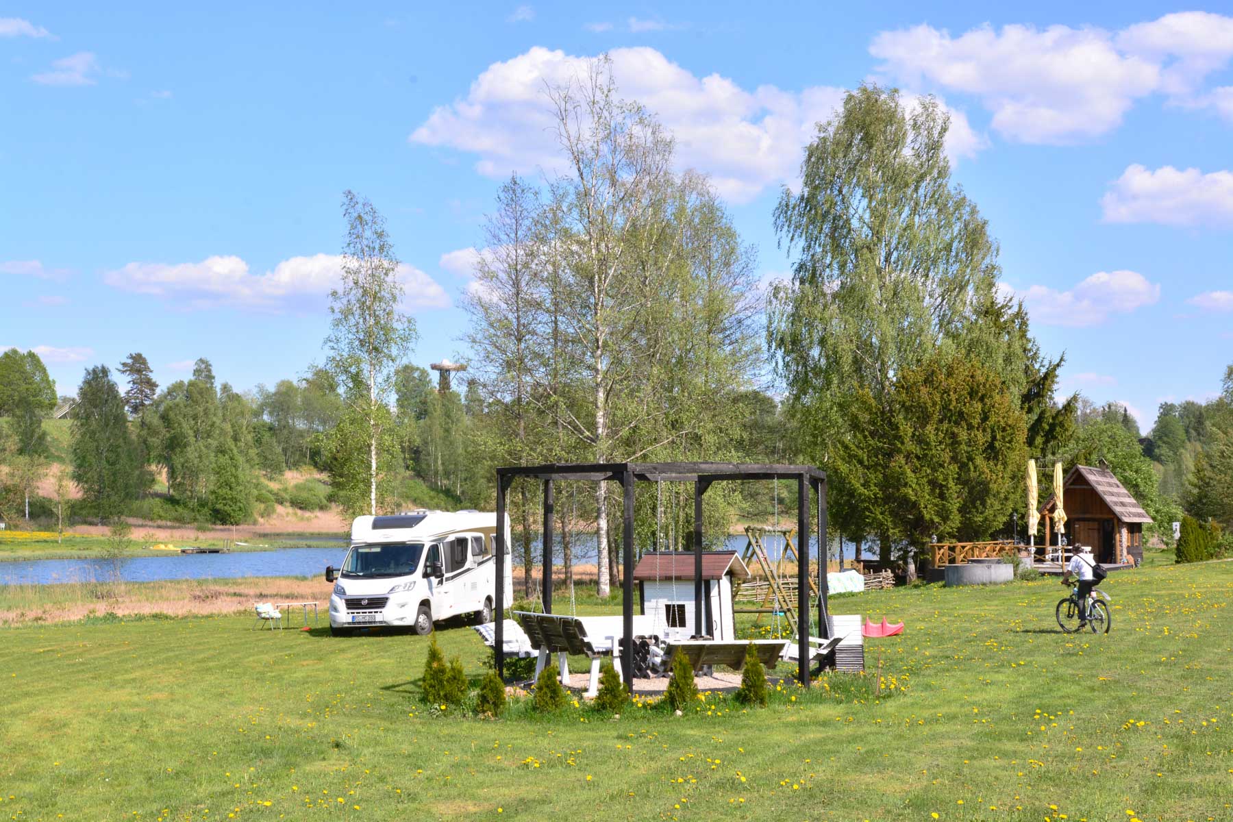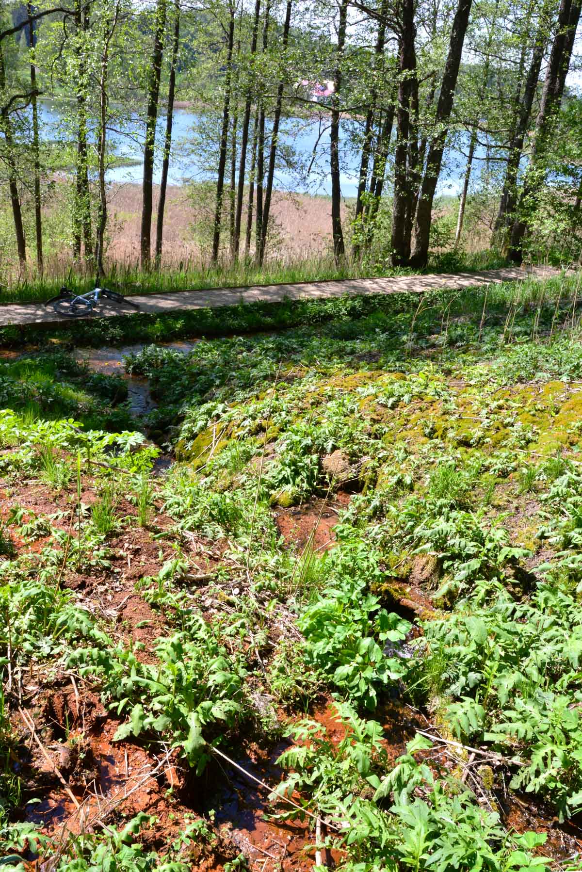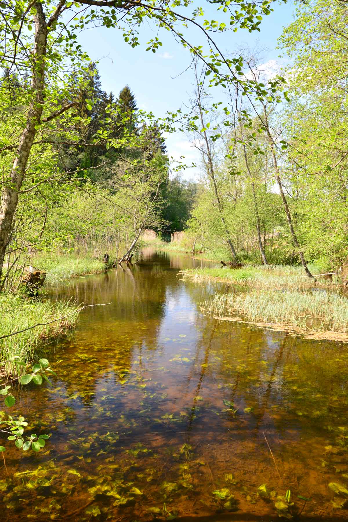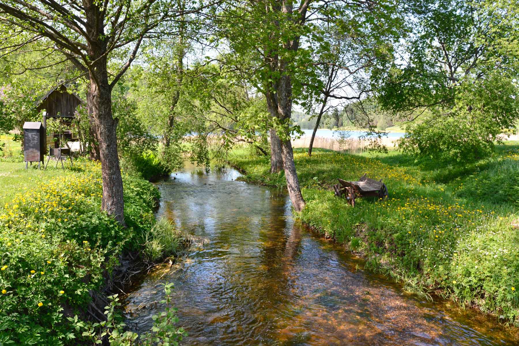 Möchte man die Tour andersherum gehen, so findet man oberhalb des Kahrila eine geeignete Parkmöglichkeit (57,76531 26,87956). Sehr angenehm lässt sich die Gegend auch mit dem Fahrrad erkunden. Die Straßen weisen wie meistens im Baltikum, allenfalls mäßige Steigungen auf und auf den zahlreichen Nebenstraßen gibt es nur wenig Kraftverkehr. Der Pfad unten am Fluss ist allerdings Fußgängern vorbehalten.