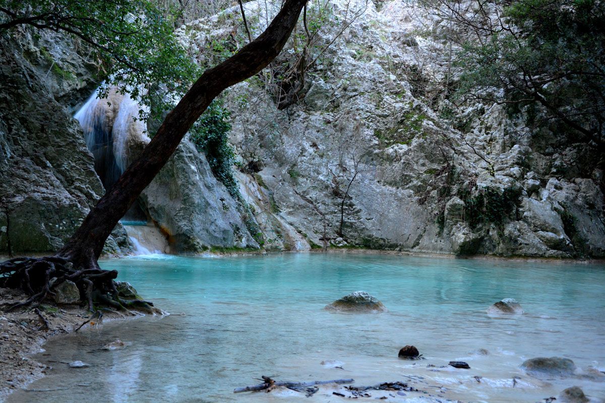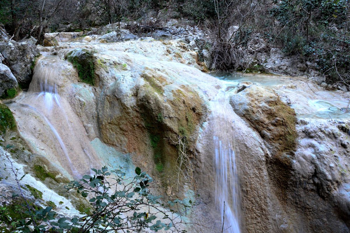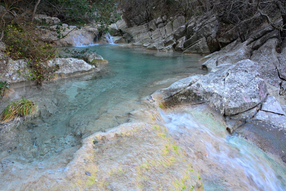 Der glasklare Bach Pecina mit seinem charakteristisch grün gefärbten Wasser bildet zudem eine Reihe von Sinterbecken aus, in denen sich das Wasser in Form von Kaskaden seinen Weg zum Meer sucht. Der Wanderweg mit seinen etwa 240 Metern Höhenunterschied führt teilweise am Bach entlang, teilweise in dessen Nähe. Er ist gepflegt und es finden sich immer wieder kurze Abstecher zum Bach, die man nutzen sollte, um sich die herrlich ausgebildeten Sinterbecken in seinem Verlauf anzusehen. Die Sinterbildung weist teilweise auch sehr bunte Färbungen auf, die durch unterschiedliche Mineralienzusammensetzungen, Bakterienrasen, Moosen, Algen und Flechten verursacht sind.