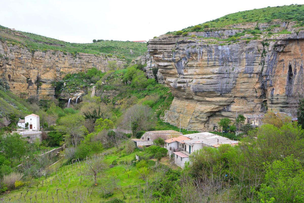 Die Cascata delle Due Rocche liegt am südlichen Ende des sizilianischen Städtchens Corleone. Der Wasserfall des Flusses San Leonardo, eines Nebenflusses des Belice, stürzt hier am Ende des Torrente di Corleone zwischen ockerfarbenen Felswänden mit markanten waagrechten Schichtungen ins Tal. Es sind auch Überreste eines ehemaligen Aquädukts zu sehen, das wahrscheinlich arabischen Ursprungs ist, und eine alte Mühle.