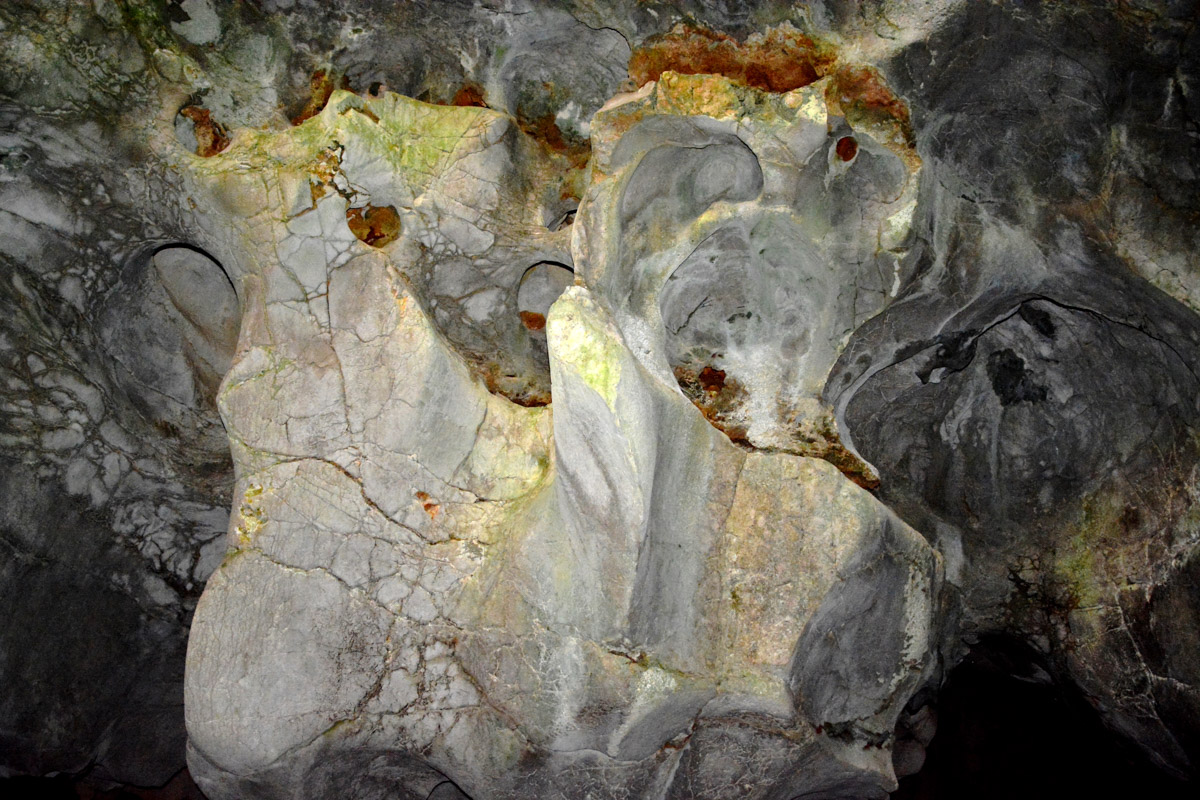 Der hat mittlerweile nämlich weitaus tiefere Höhlengänge gegraben, sodass aus einer Route am Wasser eine Tourte über dem Wasser geworden ist. Dass das nicht immer so war, lässt sich gut im Eingangsbereich der Höhle erkennen, wo man die typischen Auswaschungen findet, die starke Fließgewässer durch Wirbelbildung verursachen.