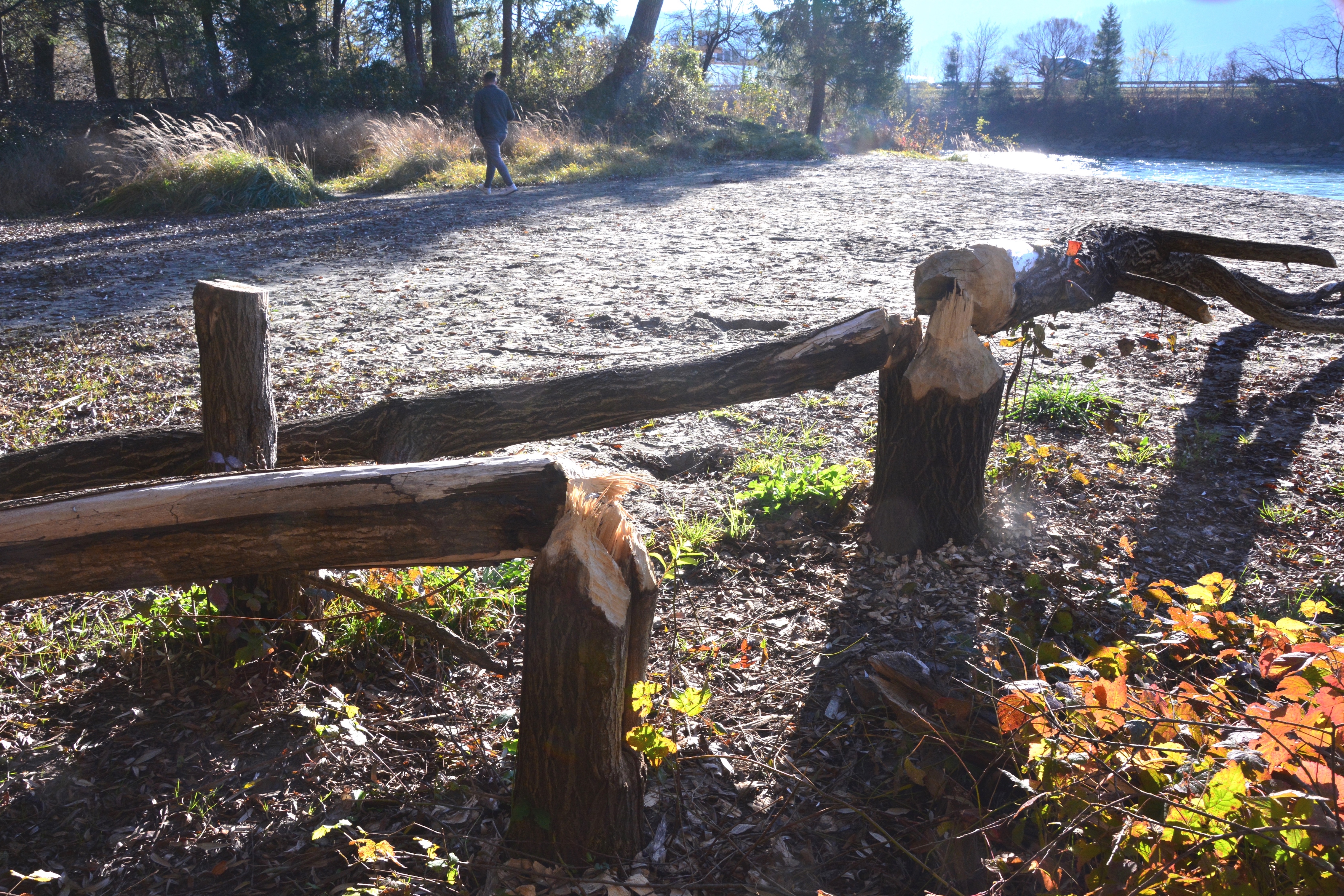 Die Biber, die sich breitgemacht haben in den Auen – überaus breit, wie man an querliegenden Bäumen und frischen Nagespänen bald bemerkt – und die 91 Vogelarten die man gezählt hat, scheinen vom Lärm wenig beeindruckt. Oder sind sie ebenso gestresst vom Lärm wie wir Menschen vom Lärm, leben sie hier nur mangels Alternativen? Die Wanderung wird jedenfalls vom ständigen Wunsch begleitet, die beeindruckende Wildnis nicht nur sehen, sondern auch in all ihren Nuancen ungestört hören zu können. Den vorbeiströmenden Fluss, das Plätschern der zahlreichen Quellen und ihrer Bäche, das Rascheln von Schilf und Blättern, Vogelstimmen.