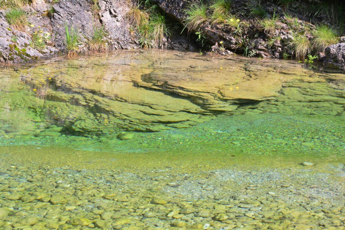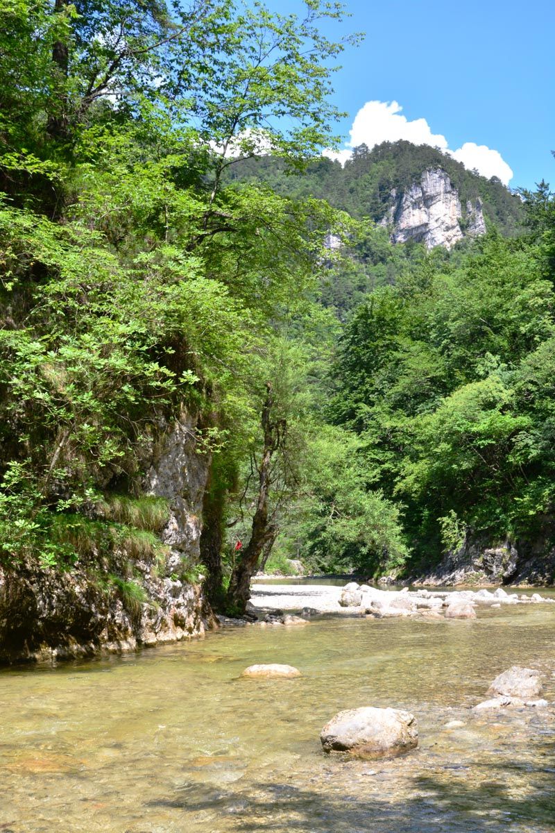 Der Weg wird vor allem an Wochenenden relativ viel begangen, da er gerade mal 20 Kilometer von der Hauptstadt Ljubljana entfernt ist. Die Gegend wird aufgrund ihres interessant geformten Felsenkarsts auch von Kletterern geschätzt. Schon die Anfahrt von Iska Vas aus, auf der man den Fluss überquert, ist landschaftlich reizvoll. Von einem geräumigen Parkplatz (45.911660, 14.499651) aus führt der Weg dann etwa 3,5 Kilometer weit und mit einem Anstieg von insgesamt rund 150 Höhenmetern nahe am Flussbett entlang. Weiter flussauf ist er nicht immer gut ausgebaut und markiert, allerdings kaum zu verfehlen, solange man sich nah am Flusslauf hält. Gutes Schuhwerk ist aber Voraussetzung für den steinigen Pfad, und wenn man bei hohem Wasserstand da und dort ein Stück barfuß laufen muss, ist ein Handtuch im Gepäck von Nutzen. Im Sommer führt die Iska sehr viel weniger Wasser als im Frühjahr, man findet aber auch dann immer wieder wunderschöne Gumpen, in denen man eintauchen und sich erfrischen kann.