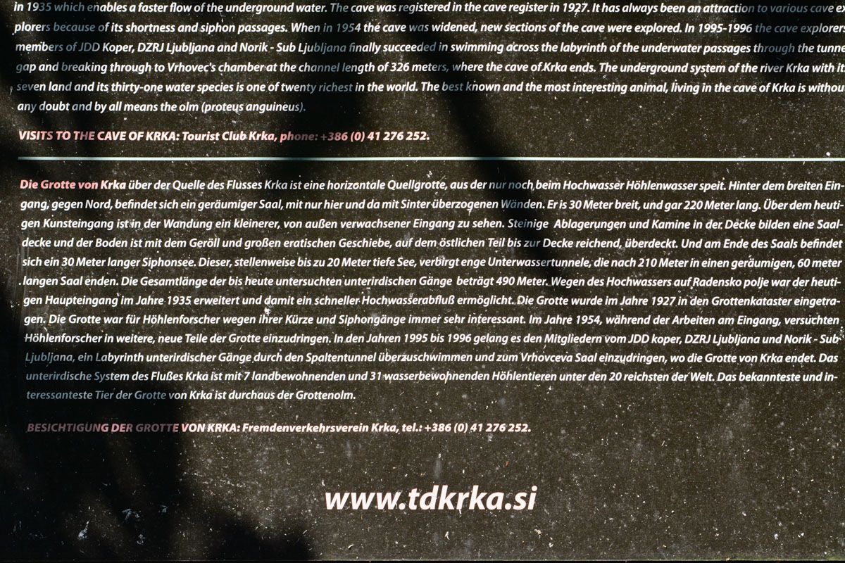 Zwar ist das Krka-Tal auf seine gesamte Länge landschaftlich schön, einen ganz besonderen Reiz hat es aber an den Quellen und um den idyllischen Ort Krka herum, wo der Fluss noch besonders stark mäandert und man auch häufig Kanuten trifft. Für Wohnmobilisten bietet die Nebenquelle einen guten Stellplatz. Zwar führt kein Wanderweg direkt am Fluss entlang, aber es ist trotzdem unbedingt lohnend, von hier aus zu Fuß oder mit dem Rad die zwei Quellen, Höhlen und den Ort Krka zu erkunden.