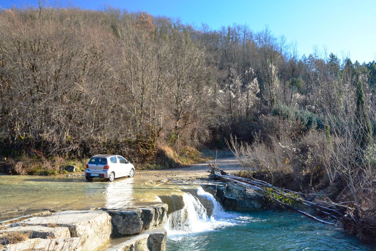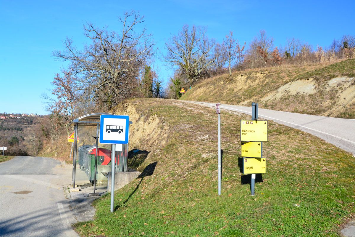 Die Mazurinov Mühle liegt am Fluss Dragonia, etwa 3,5 Kilometer unterhalb dessen Quelle. In der Ortsmitte von Trsek folgt man ab einem Parkplatz (45.481996, 13.832036), der auch für Wohnmobile geeignet ist, zunächst einem Feldweg, der an einem alten Brunnenhaus vorbeiführt. Unten am Fluss geht es dann einen Pfad entlang, der kurz vor der Mühle die Dragonia quert, sodass man das letzte Wegstück südlich von ihr läuft.