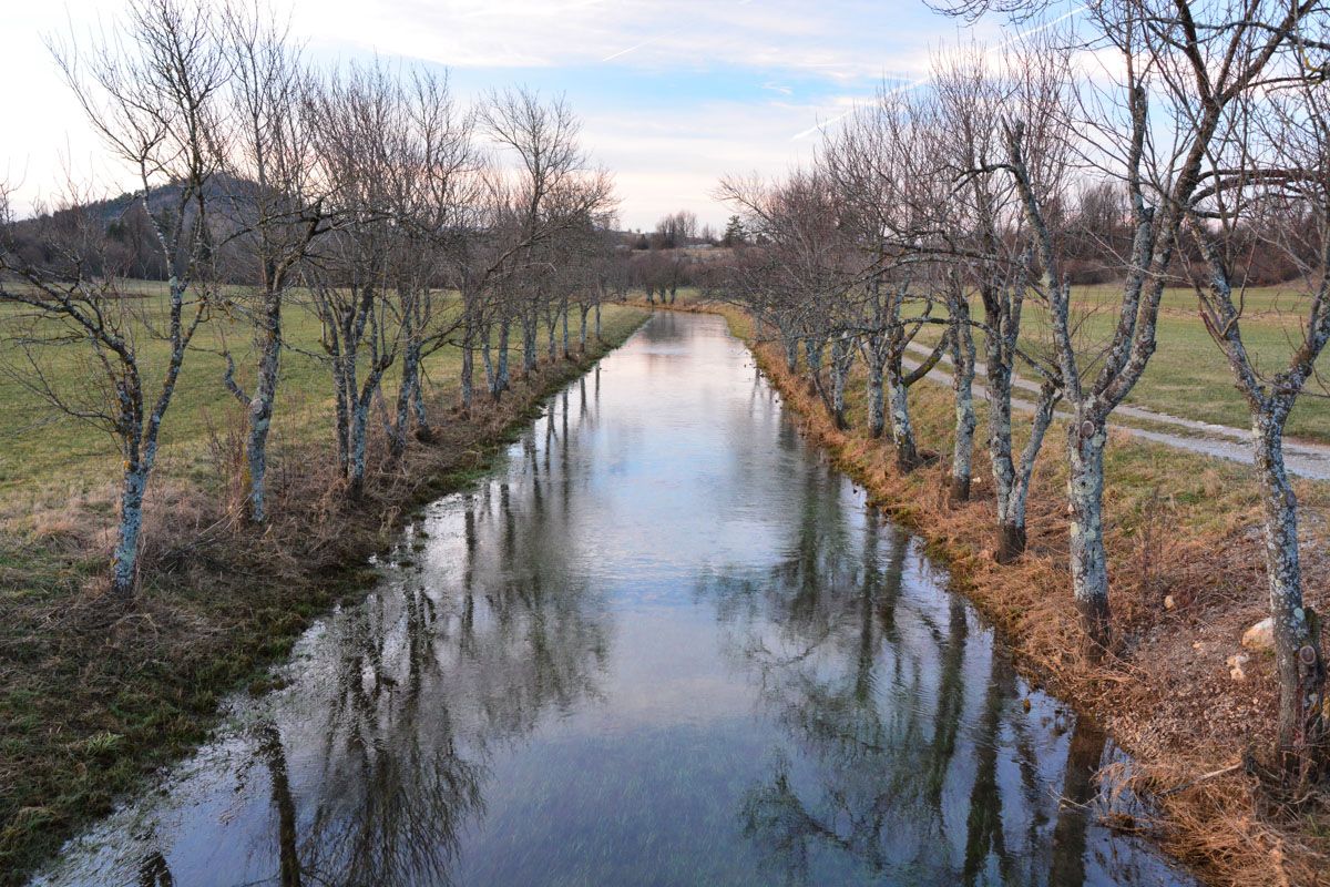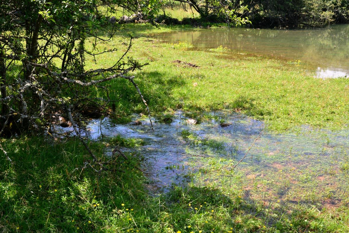 Bei normalen und niedrigen Grundwasserständen hingegen ist die Pivka oft über viele Kilometer vollständig verschwunden und man erkennt ihren Lauf lediglich an bewachsenen Uferstreifen und den leeren Wassergräben, die er hinterlässt. Dabei durchläuft sie hier in ihrem Oberlauf allerdings keine großen Höhlensysteme - jedenfalls keine, die bereits bekannt wären - sondern sie durchfließt unterhalb ihres Bettes durchlässige Gesteinsschichten, um dann an Hindernissen wieder an die Oberfläche aufzusteigen. Wenn sich im Grundwasserleiter der Druck nach Niederschlägen erhöht, nimmt die Zahl der Wasseraustritte zu und die leeren Gräben füllen sich nach und nach wieder mit Wasser aus periodischen Quellen . Einige von ihnen liegen wenige Kilometer unterhalb des Ursprungs, östlich und nördlich des Ortes Parje.
