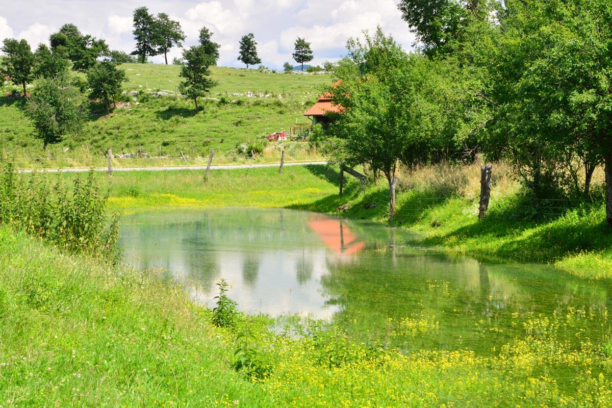 Die Pivka ist ein besonders ausgeprägter Karstfluss. Sein Name leitete sich ab von "pivsce", was so viel meint wie Feld, das Wasser hat. In Hochwassersituationen trifft der Name auch wirklich zu - und da Hochwässer regelmäßig auftreten, werden die Häuser hier seit jeher auf kleinen Anhöhen gebaut. Dann überflutet die Pivka weite Teile des Pivka Polje unterhalb seiner Hauptquelle bei Zagorje.