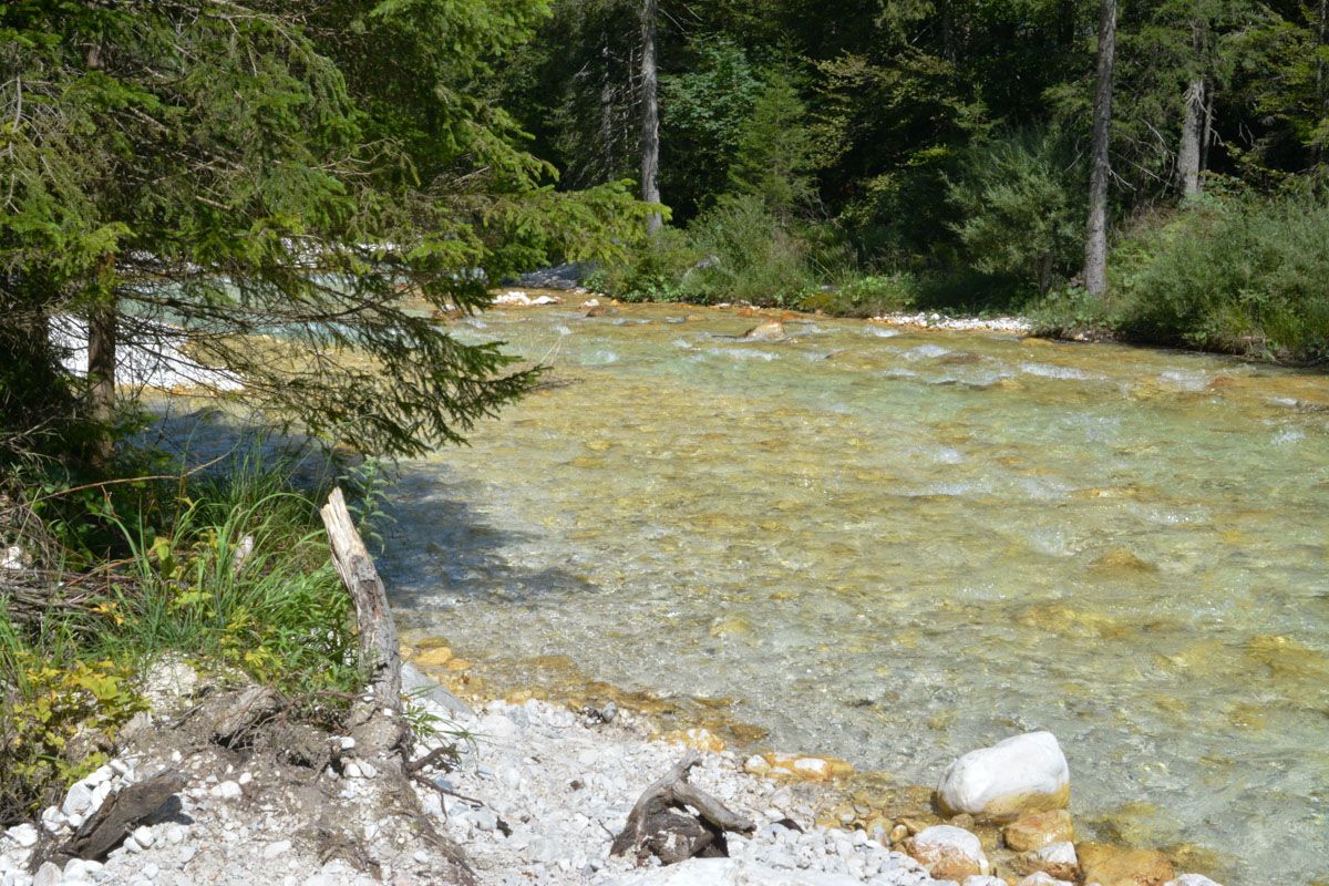 Neben dem idyllischen Flusslauf liegt der See Kreda und ein wenig abseits die Quelle der nur etwa 300 Meter langen Lipnika, die auf 640 Meter Höhe entspringt, und zu der ein markierter Pfad von der Straße abgeht (46.385936, 14.030512). Bei ausreichendem Wasserstand ist der kurze Abstecher zu der idyllischen, aus bemoosten Felsen austretenden Quelle durchaus lohnenswert. Wandert man von hier knapp einen Kilometer am rechten Ufer weiter nach Nordwesten, so findet man ein besonderes Kleinod, das auf keiner Karte verzeichnet ist: einen namenlosen Quellsee, nur wenige Meter vom Fluss entfernt. Möglicherweise handelt es sich um ein Toteisloch, das mit dem Grundwasser in Kontakt steht und dem Fluss im Frühjahr und nach Starkregen nennenswerte Wassermengen zuführt. Im Sommer liegt es dann wie ein kreisrundes Auge inmitten herrlicher Blumenwiesen und der Abfluss ist trocken.