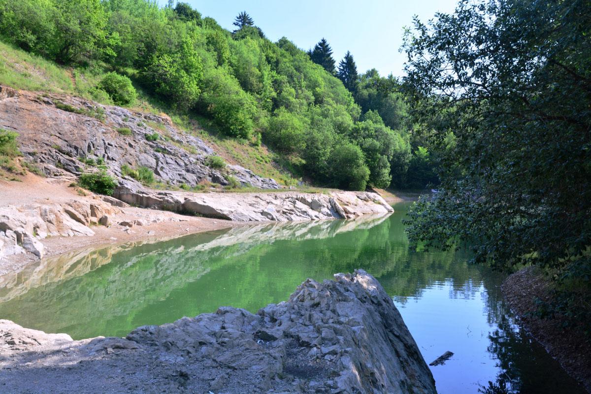 Der Blaue See, der aus einem Steinbruch entstanden ist, befindet sich in einem Becken aus sehr kalkhaltigem Gestein. Er verfärbt sich einmal im Jahr so, dass seine Farbe zwischen hellblau und türkis schwankt.