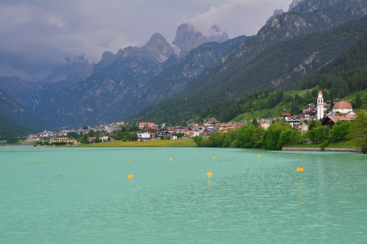 Der Lago di Santa Caterina, nach der größten Ortschaft an seinem Ufer auch Lago Auronzo genannt, ist ein etwa 2,3 Kilometer langer und 400 Meter breiter künstlicher See auf 850 Meter Höhe in der grandiosen Berglandschaft der Sextener Dolomiten.