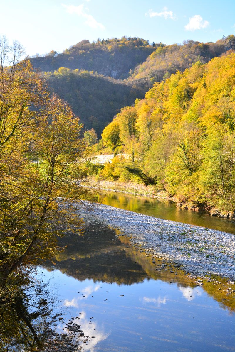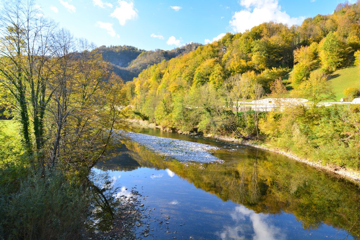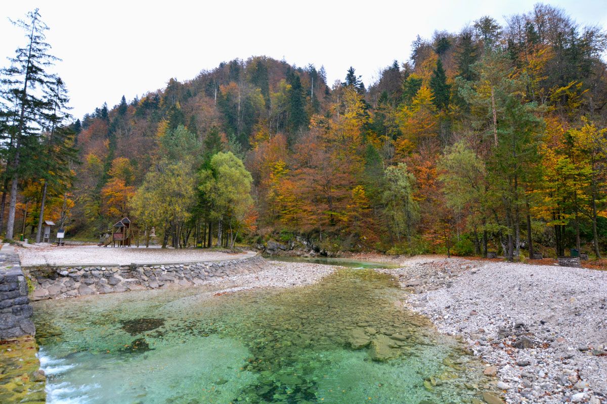 Der überaus reizvolle Platz an der Mündung der Belca (Krajinski Park Zgornja Idrijca) ist ein beliebter Ausflugsort und touristisch gut erschlossen. Eine Anfahrt mit Wohnmobil ist zwar möglich, der Weg entlang der Idrijca aber so außerordentlich schön, dass er vorzugsweise zu Fuß oder mit Fahrrad zurückgelegt werden sollte. Am schönsten ist er im Frühjahr oder im September, wenn sich das Laub einfärbt, aber die Sonne noch hoch steht.