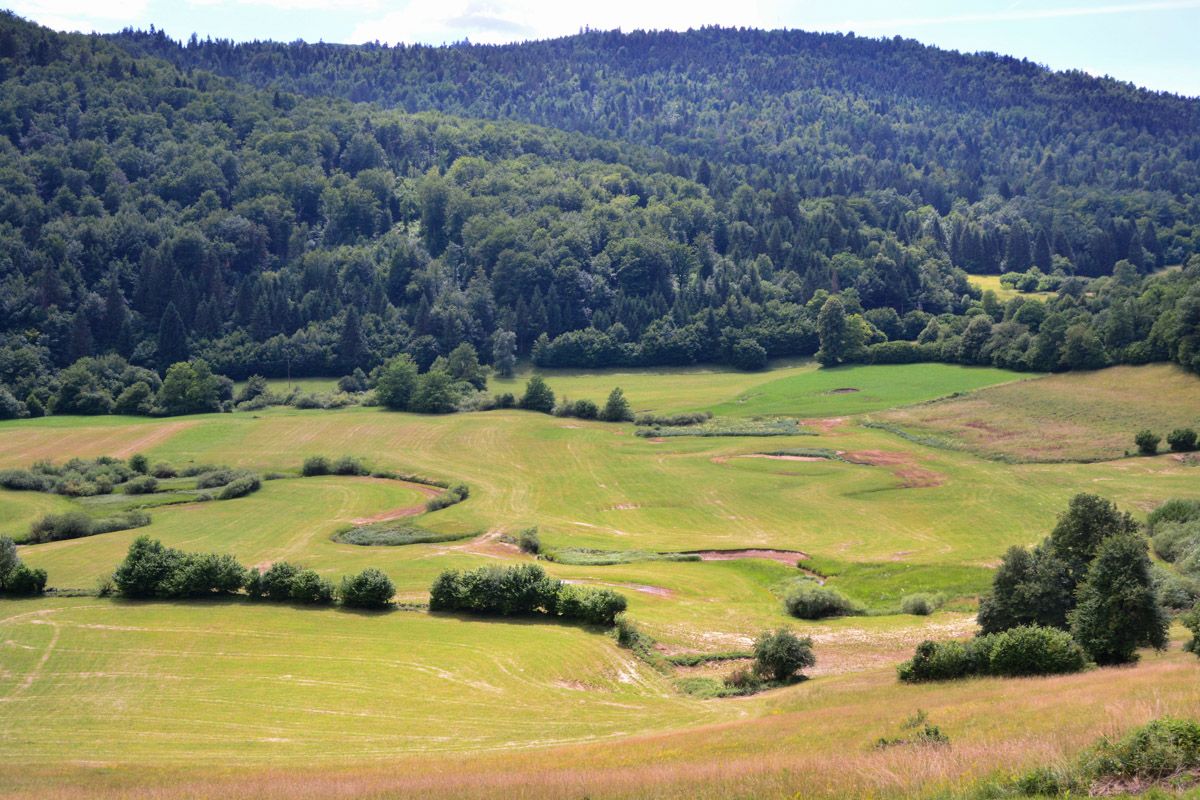 Von hier aus lassen sich auch schöne Fahrradtouren unternehmen. So etwa eine aussichtsreiche Fahrt über Preserje hoch zur hoch gelegenen Kapelle Sveti Ana mit ihrem grandiosen Blick auf die Alpenkette. Der Weg macht in Preserje einen kurzen Abstecher zum Ponikva Karstfeld, auch Dolenja Brezovica , mit seinen zahlreichen Quellen und Ponoren. Hier taucht das Wasser wieder auf, das etwa zehn Kilometer weiter südlich in den Ponoren des Poljes von Raktina versickert ist. Nach starken Regenfällen ist Ponikva weitflächig überschwemmt, während man sonst von oben aus gut seine trockenen Wasserläufe und Ponore sehen kann. Auf der etwa 6,4 Kilometer langen Tour (einfache Strecke) sind etwa 200 Höhenmeter zu überwinden.
